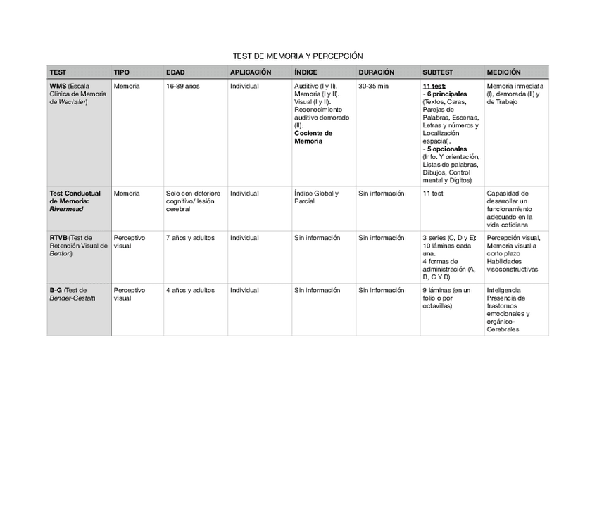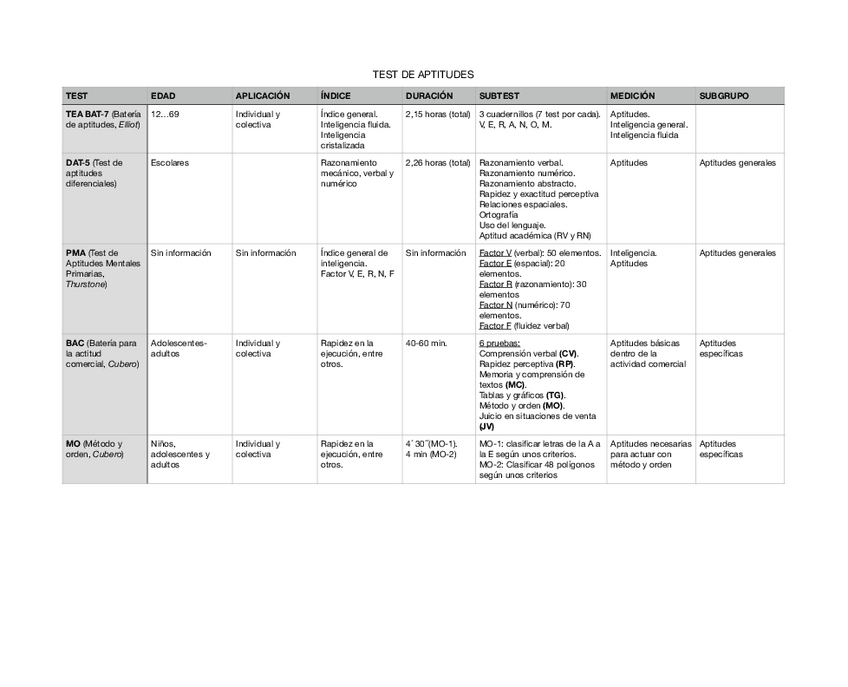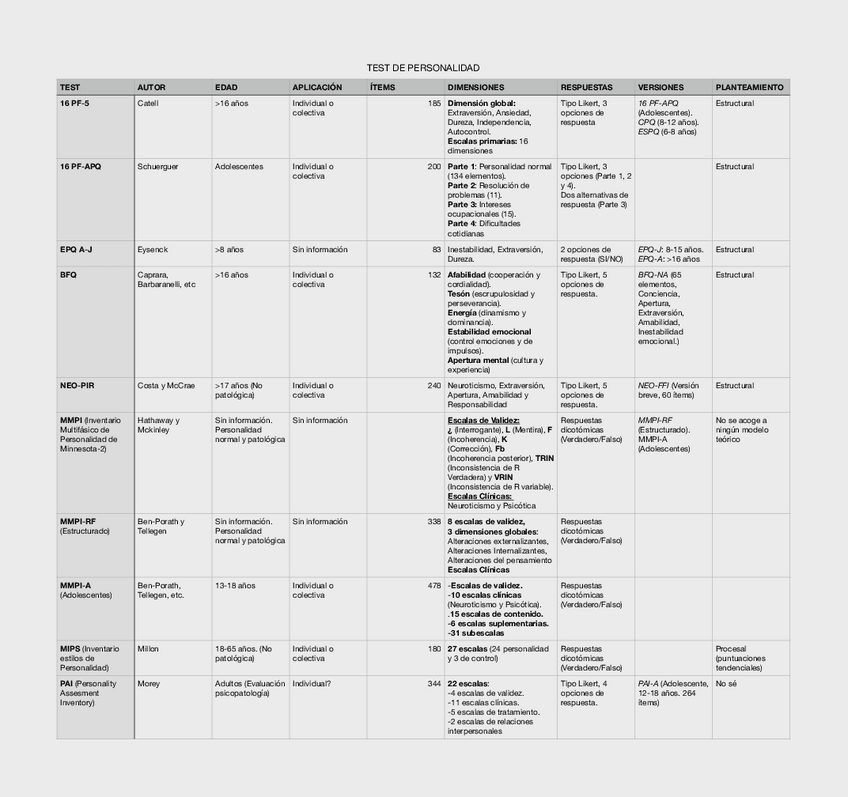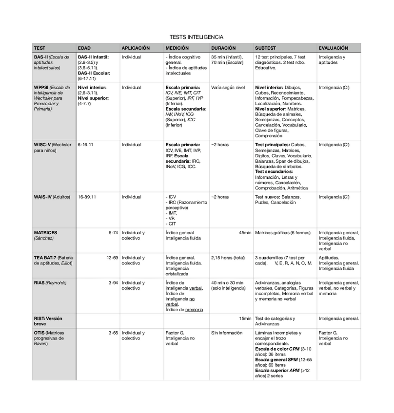 He publicado nuevos apuntes de 3º Evaluación Psicológica: Tablas resumen test