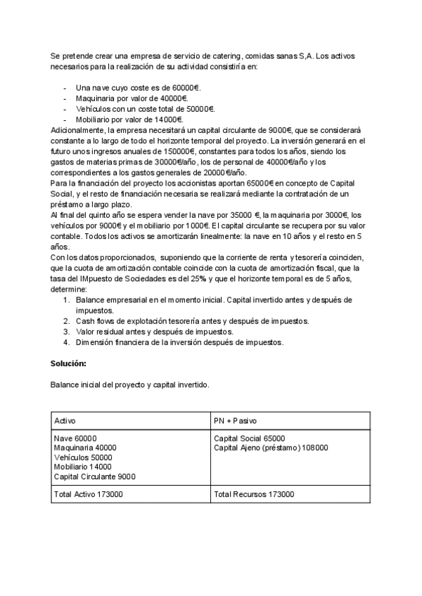 He publicado nuevos ejercicios de 4º Introducción a las Finanzas: Empresa Comidas Sanas SA.pdf