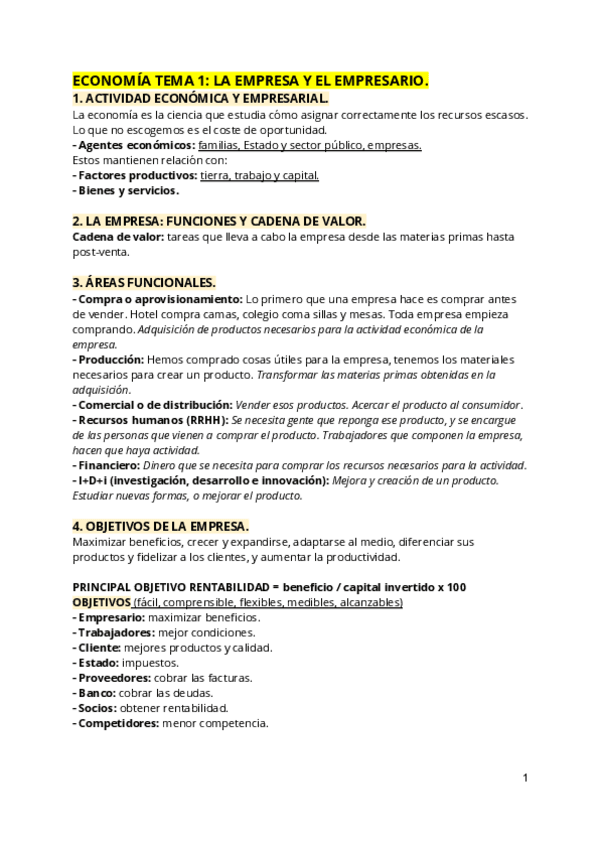 ECONOMÍA DE LA EMPRESA 1º BACHILLERATO