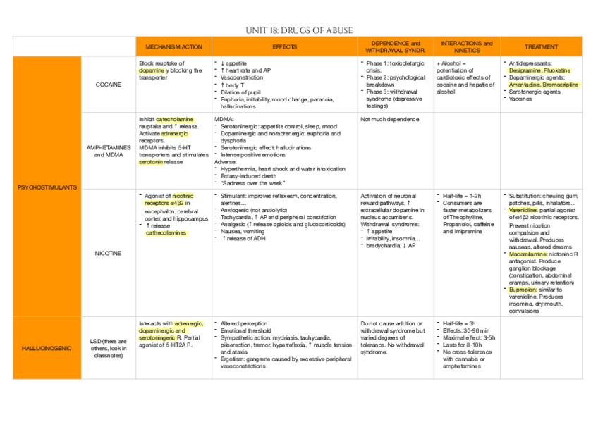 Tablas MUY ÚTILES Farmacología I