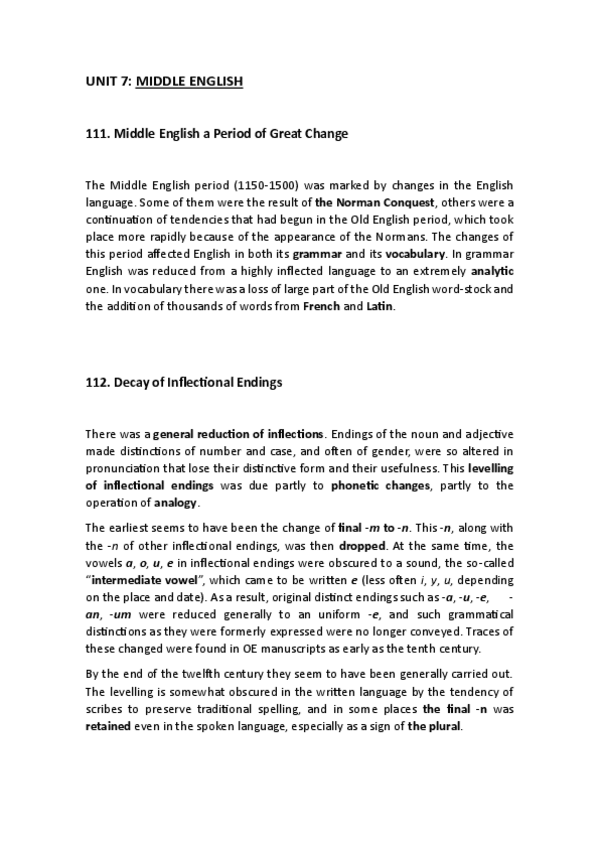 Ya está el tema 7 - Middle English del libro A History of the English Langyage by Albert C. Baugh & Thomas Cable subido en mi carpeta de Historia de la Lengua :) <3