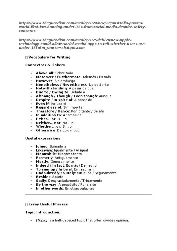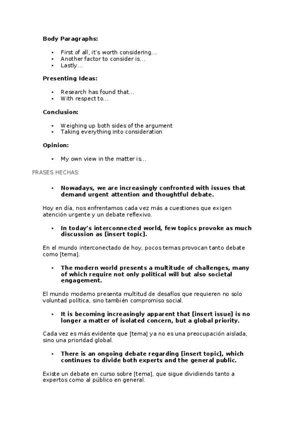 ingles vocabulario de cara al writting del examen de pau/ebau