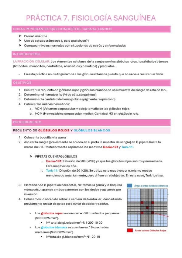 Apuntes sobre la práctica 7 (Fisiología sanguínea) de Fisio animal. Se incluyen cuestiones importantes a conocer de cara al examen ;)