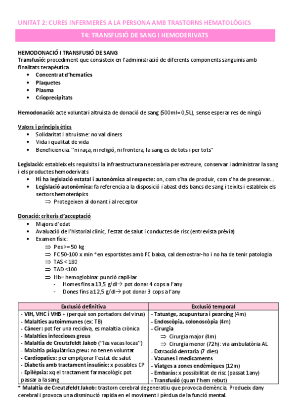 Hematologia - Infermeria clínica I