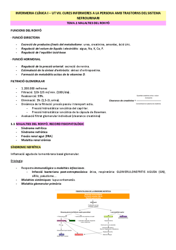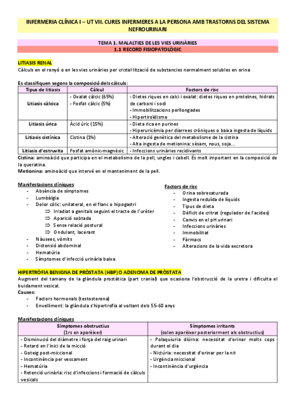 Nefrologia + Urologia - Infermeria clínica I