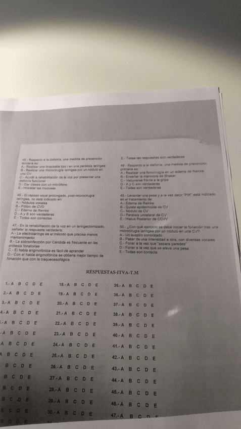 He publicado nuevos test de 3º Intervención Logopédica en los Trastornos de la Voz y de la Audición: EXAMEN VOZ Y AUDICIÓN.pdf