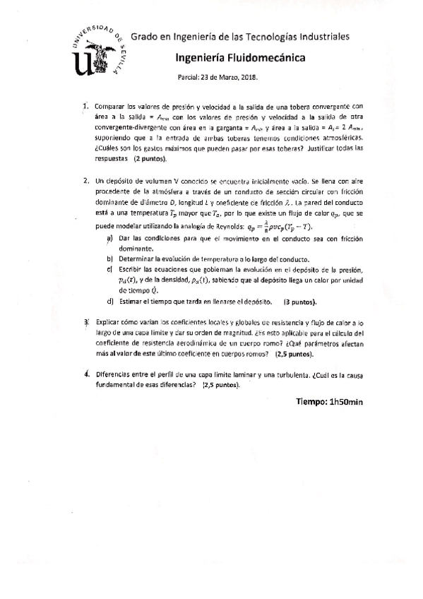 He publicado nuevos examenes de 4º Ingeniería Fluidomecánica: Primer Parcial 2018.pdf