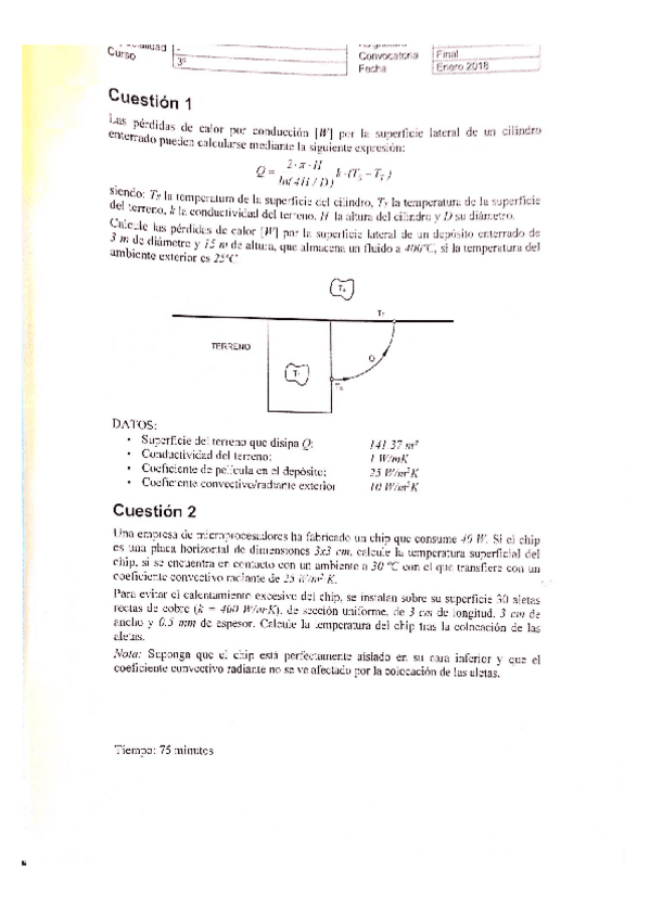 He publicado nuevos examenes de 3º Transmisión de Calor: Examen Enero 2018