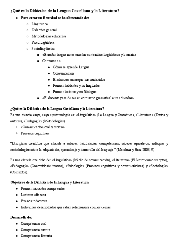 Temario de Didáctica de la Lengua Castellana y Literatura