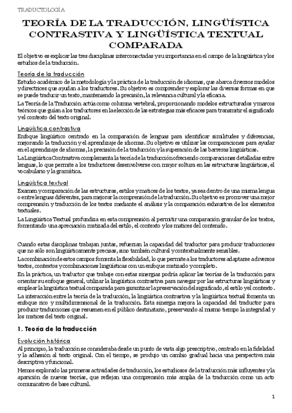 teoría de la traducción, lingüística contrastiva y lingüística textual