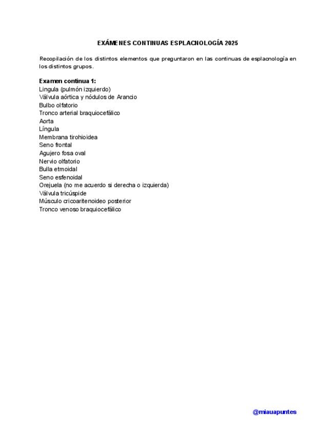 Recopilación de las estructuras preguntadas en las continuas de esplacno en TODOS los grupos en 2025.