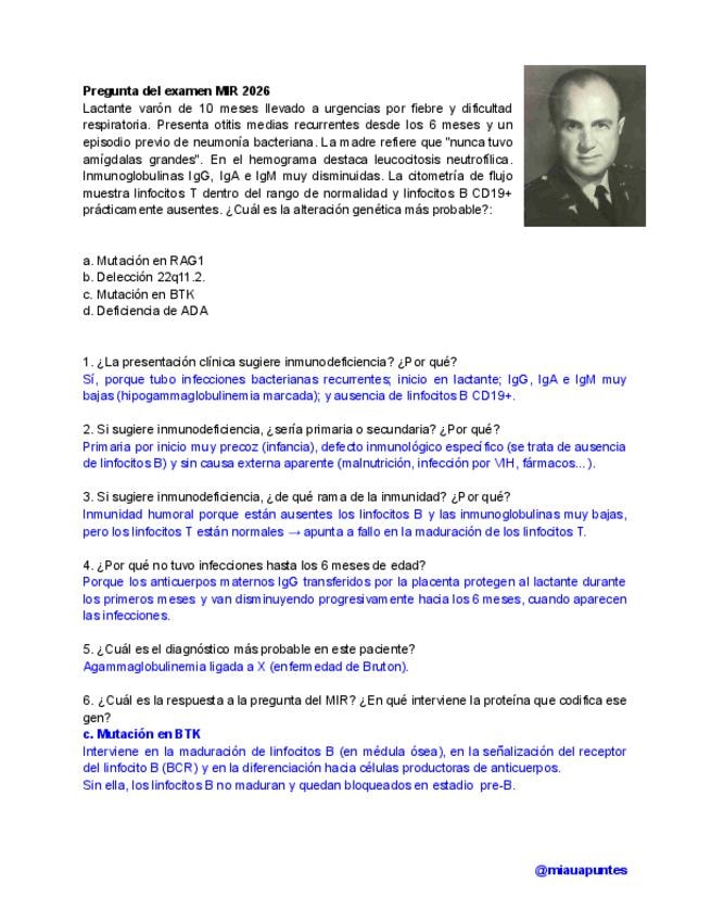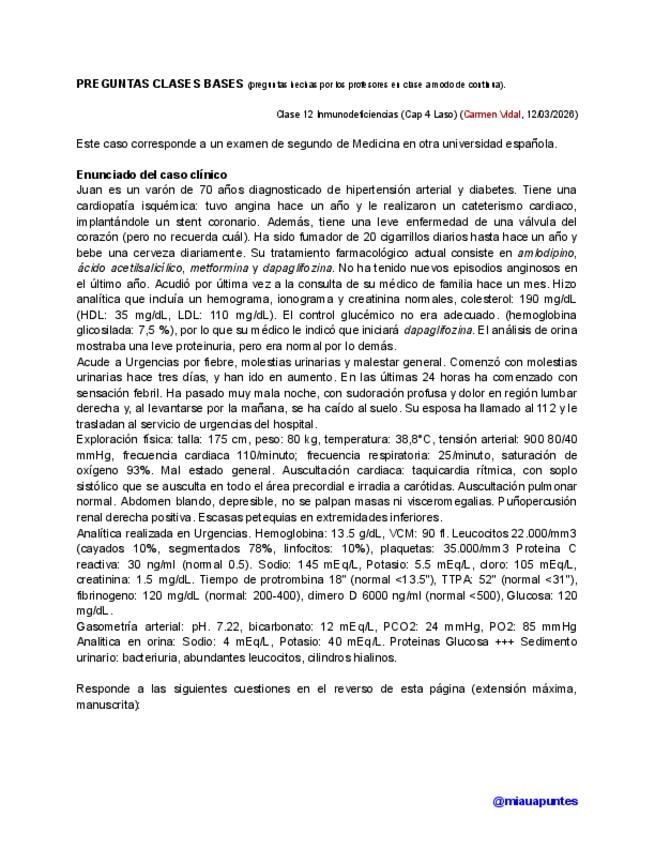 Caso clínico (puesto a modo de continua) CORREGIDO de la clase de inmunodeficiencias de Bases del turno de mañana impartida por Carmen Vidal.
