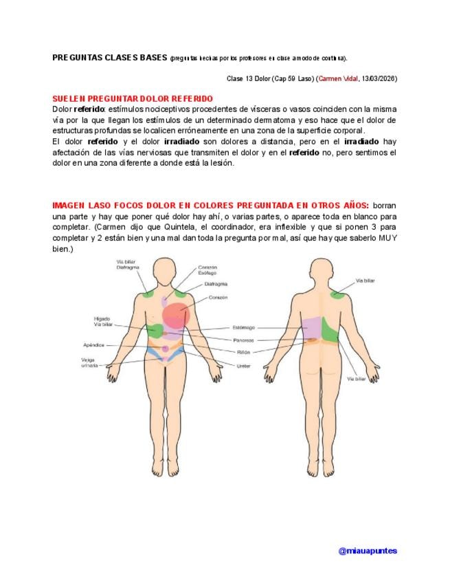 PREGUNTAS EXAMEN + continua CORREGIDA de la clase de dolor de Bases del turno de mañana impartida por Carmen Vidal.