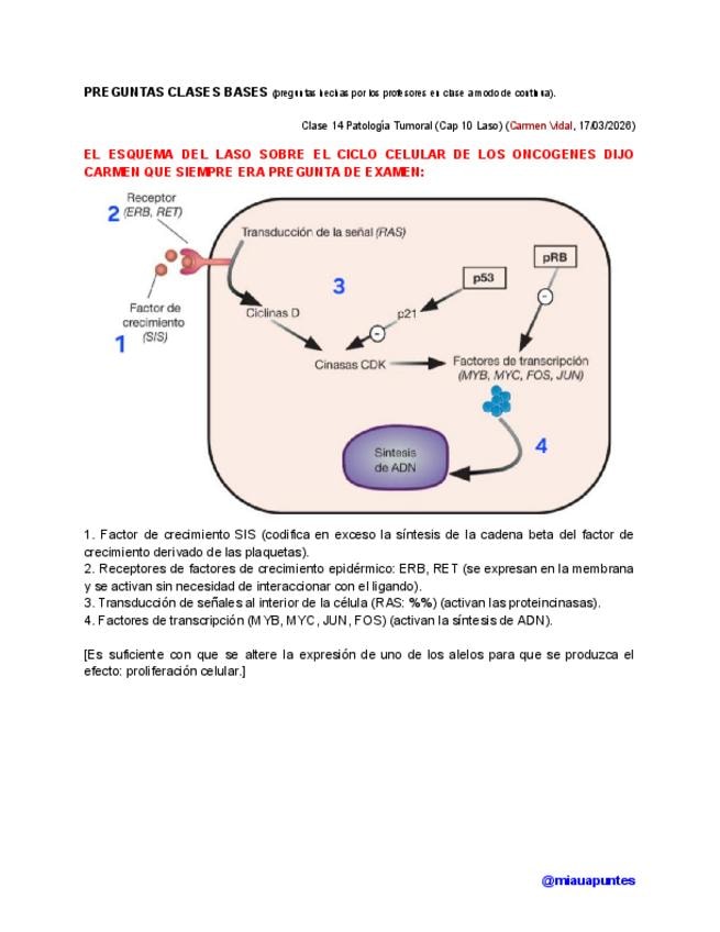 PREGUNTAS EXAMEN + continua CORREGIDA de la clase de patología tumoral de Bases del turno de mañana impartida por Carmen Vidal.
