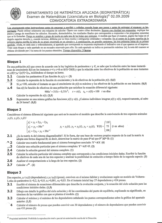 He publicado nuevos examenes de 1º Biomatemáticas: Examen Febrero 2009