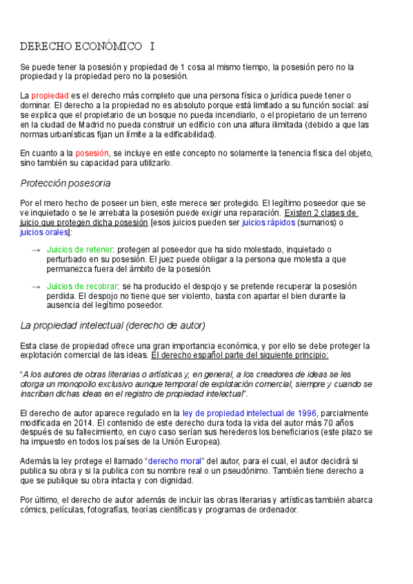 He publicado nuevos apuntes de 1º Derecho Económico: Derecho tema 4 - Posesión y propiedad.pdf
