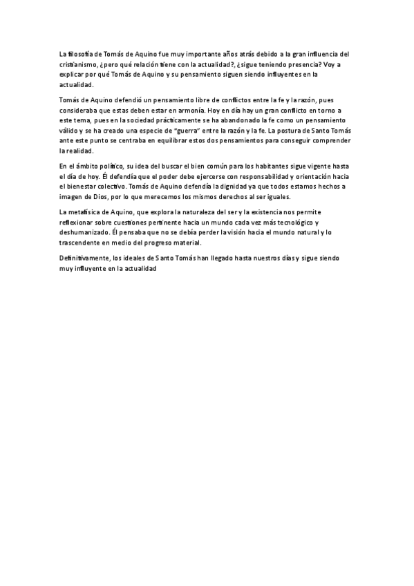 Tema Tomás de Aquino completo Murcia. Nota examen 10