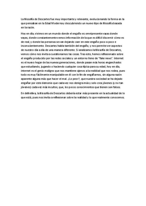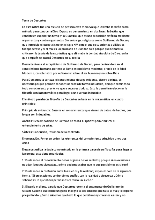 Tema Descartes (falta los análisis de textos) Murcia. Nota examen 10