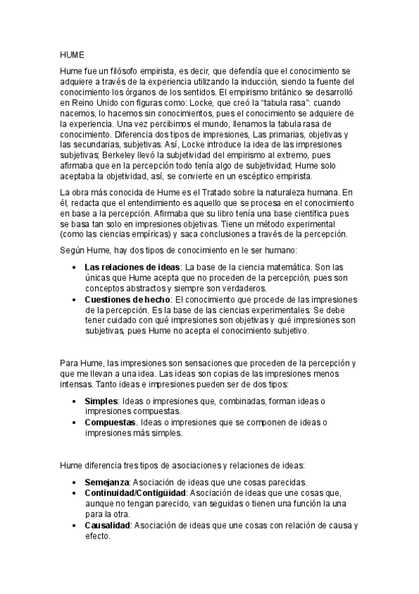 Tema Hume completo Murcia. Nota examen 10