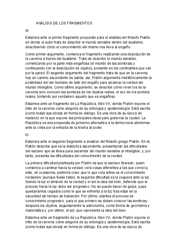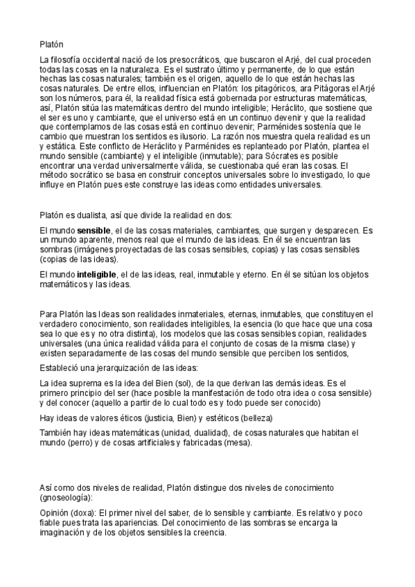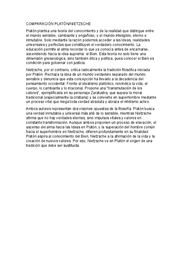 Tema Platón (falta la diseración, la comparativa está en Nietzsche) Murcia. Nota examen 10