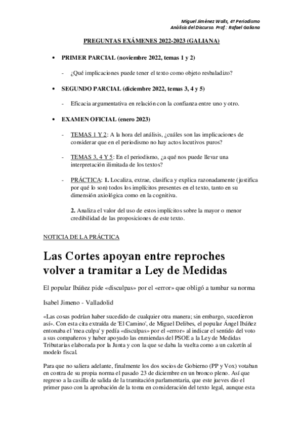 He publicado nuevos apuntes de 4º Análisis del Discurso Periodístico: Prácticas corregidas (Galiana)