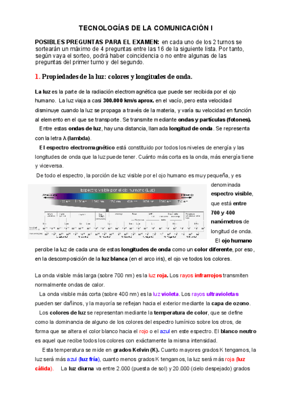 Apuntes redactados de las posibles preguntas del examen de Tecnologías de la Comunicación I.