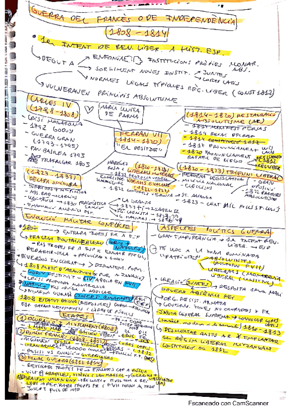 Apuntes de Història d'Espanya con esquemas y recursos visuales específicamente diseñados para aprobar con buena nota la selectividad.