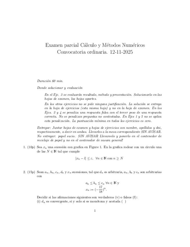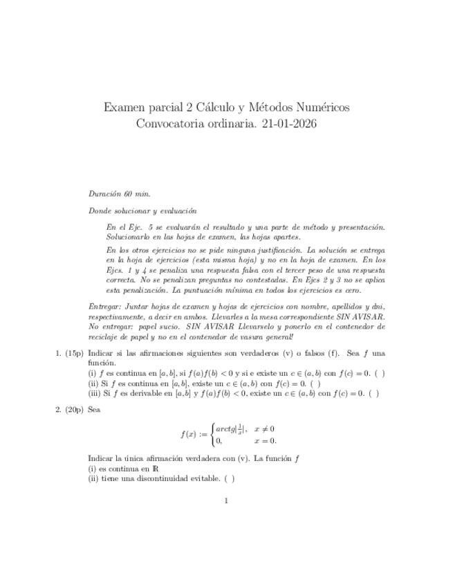 He publicado nuevos examenes de 1º Cálculo y Métodos Numéricos: Enunciado y soluciones parcial 1 25-26