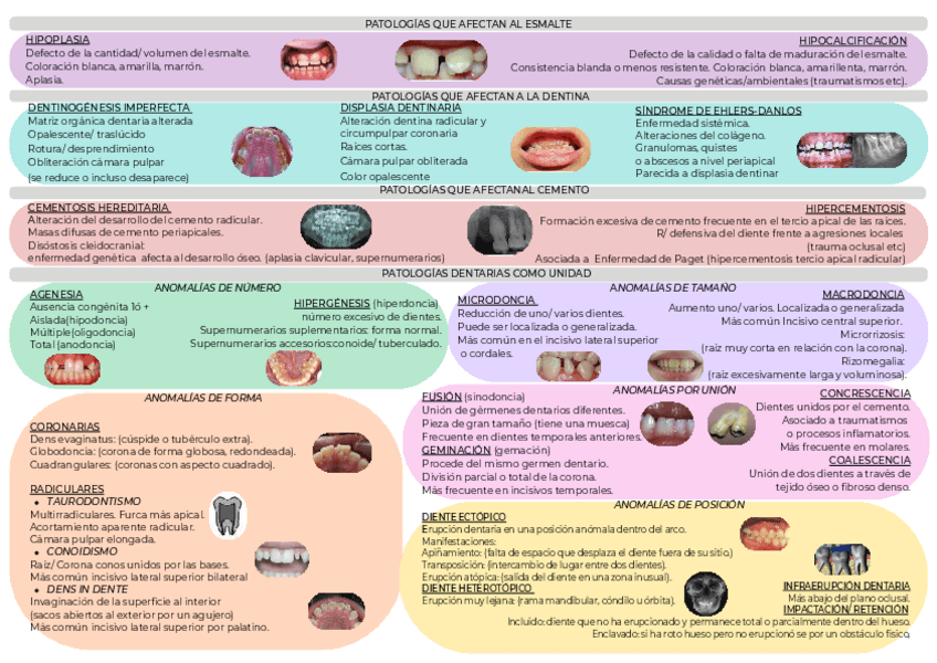 Resumen visual de las clasificaciones de lesiones de la cavidad oral. Traumatismos y anomalías dentarias.
