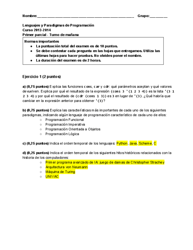 He publicado nuevos examenes de 2º Lenguajes y Paradigmas de Programación: PrimerParcialLPPturnomanana2014.pdf