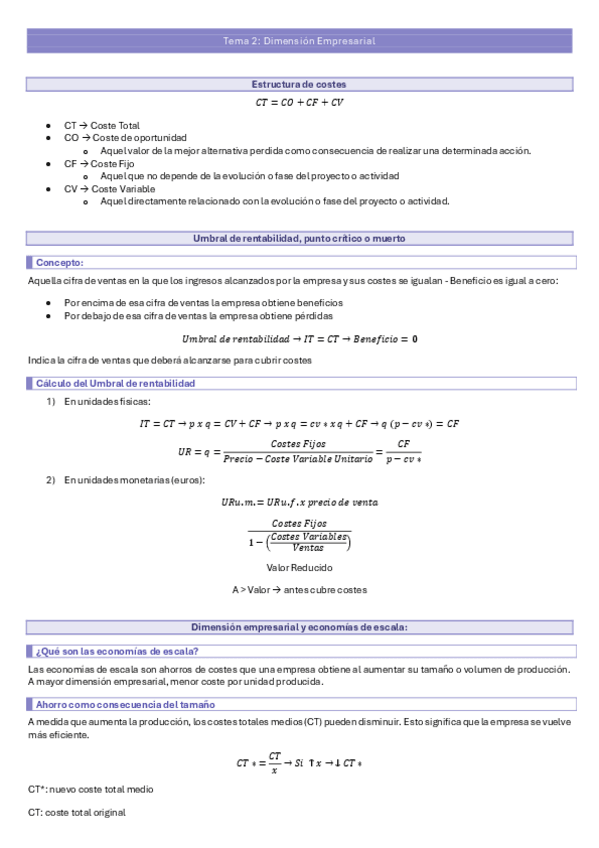 Apuntes del tema 2 del curso Organizacion de empresas, 2024-2025. Grupo T1