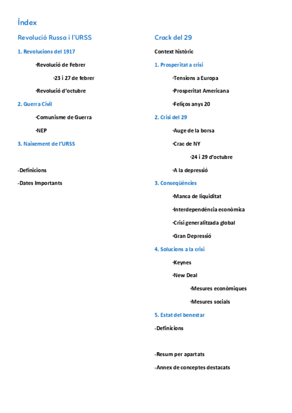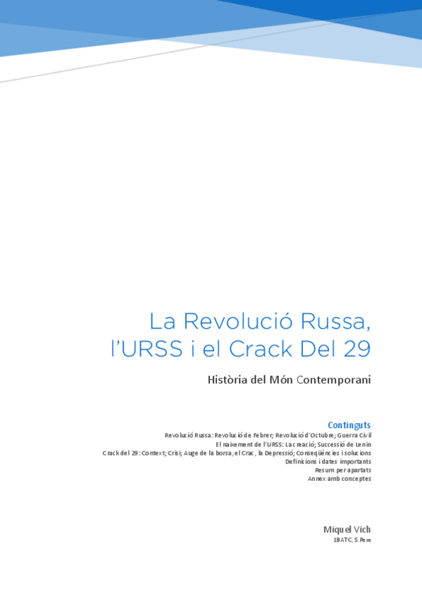 Apuntes de Historia del Mundo Contemporáneo en catalán sobre la Revolución Rusa en su etapa de 1917 (Revoluciones de febrero y de octubre), la creación de la Unión Soviética y el desarrollo del Crack del 29.
