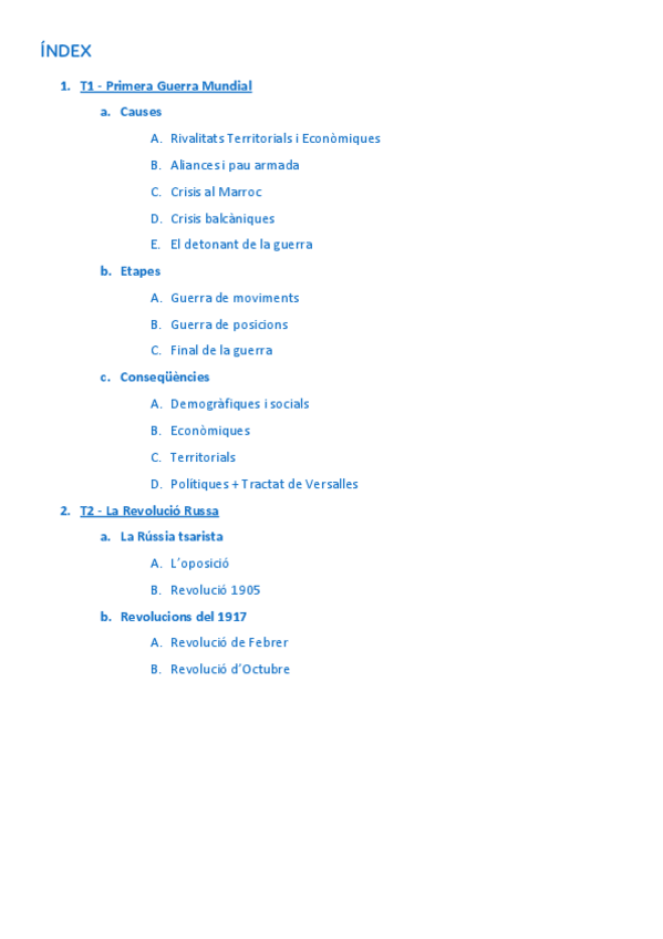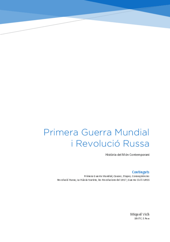 Apuntes en catalán de la Primera Guerra Mundial (Causas, desarrollo, consecuencias...) y de la Revolución Rusa.