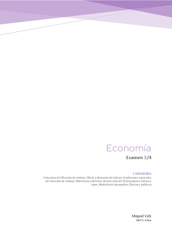 Apuntes de Economia en castellano sobre el Mercado de Trabajo, SMI, oferta y demanda de trabajo, la brecha salaria, el desempleo, el techo de cristal...