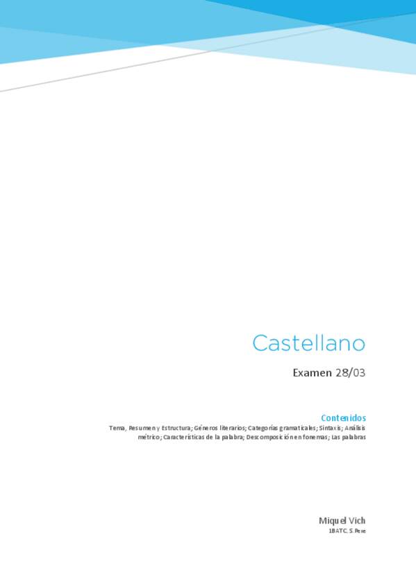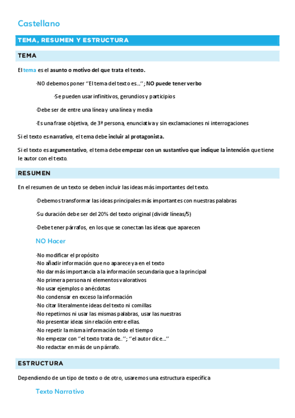 Apuntes de Lengua Castellana sobre tema y resumen, géneros literarios, categorías gramaticales, sintaxis, descomposición en fonemas...