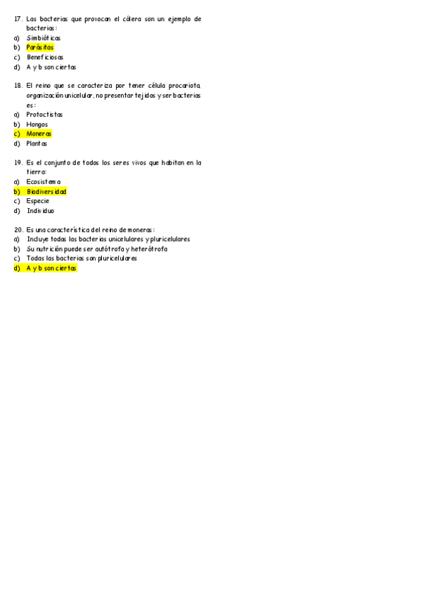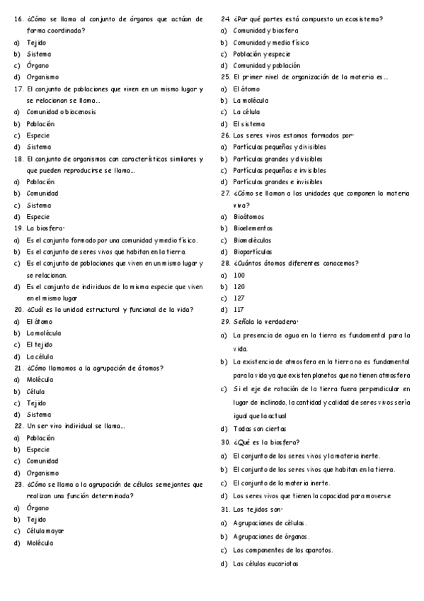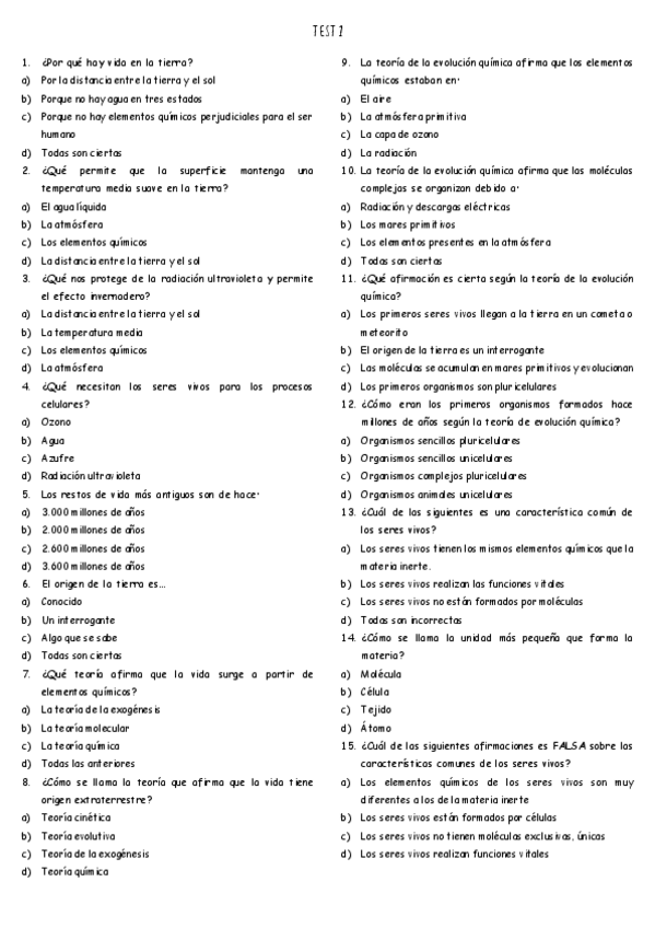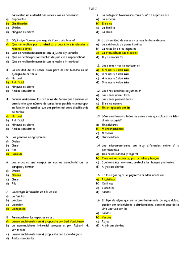Preguntas tipo TEST clasificación seres vivos