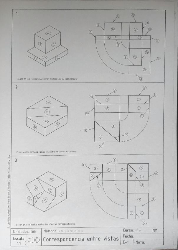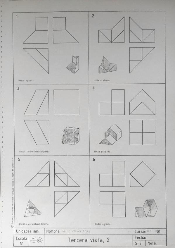 Láminas resueltas y corregidas de perspectiva de primero de bachillerato.