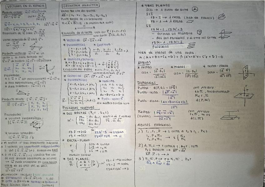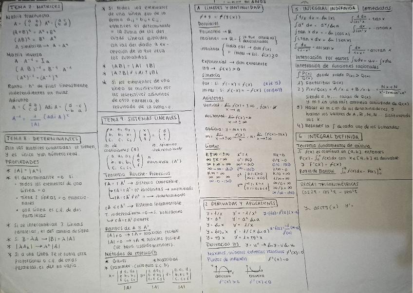 Resumen completo de toda la asignatura Matemáticas II en 3 carillas. Saqué un 8.5 en el examen de Matemáticas II en selectividad.