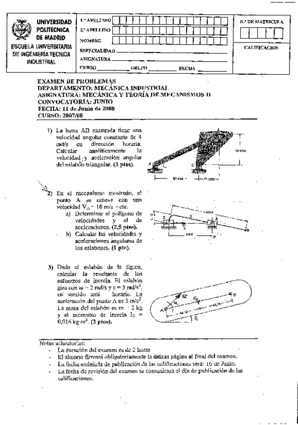 He publicado nuevos apuntes de 3º Teoría de Máquinas y Mecanismos: Exámenes de otros años