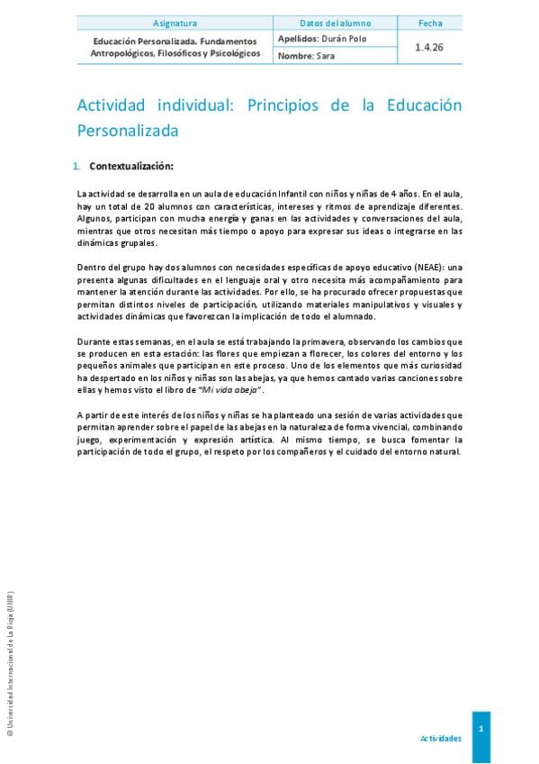 Bio: Educadora infantil. Te subo apuntes y trabajos para que puedan ayudarte en el proceso, además, con la nota que saqué corregida para que puedas ver la calidad de la actividad!