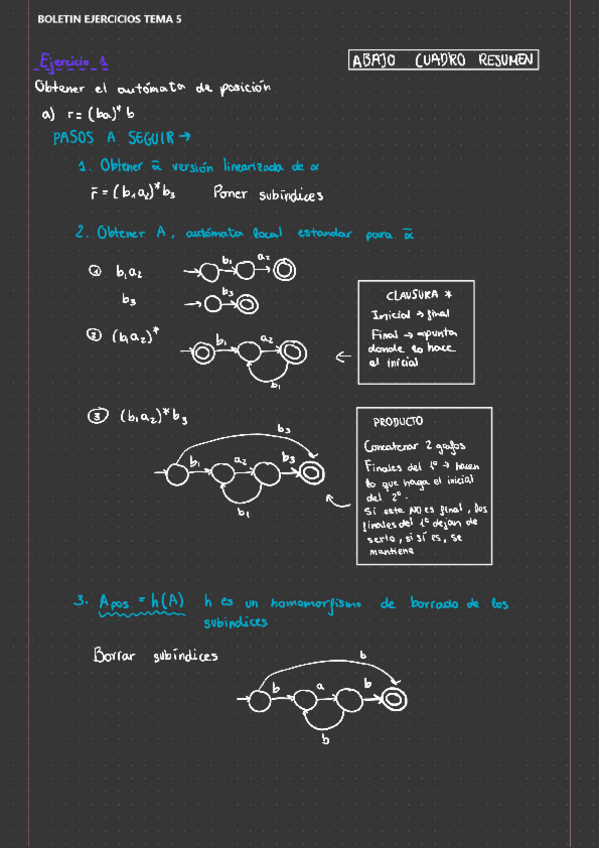 Cómo hacer el autómata de posición con ejemplos del boletín de ejercicios del TEMA 5