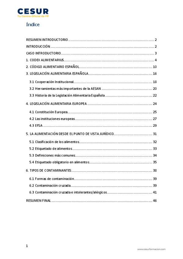 TEMARIO COMPLETO ALIMENTACIÓN EQUILIBRADA CESUR