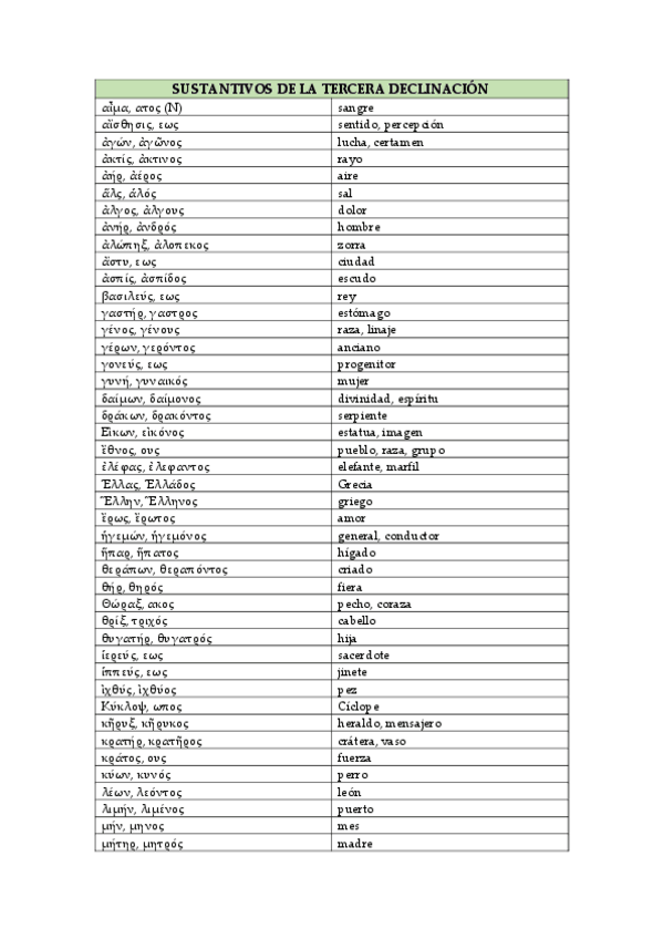vocabulario fundamental tanto para Griego I Y II