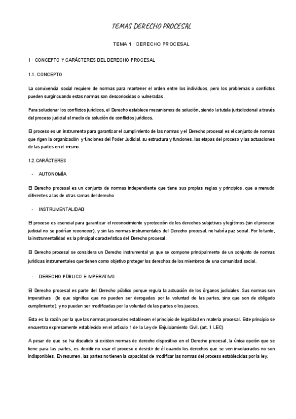 Temas Derecho Procesal, Apuntes Manual