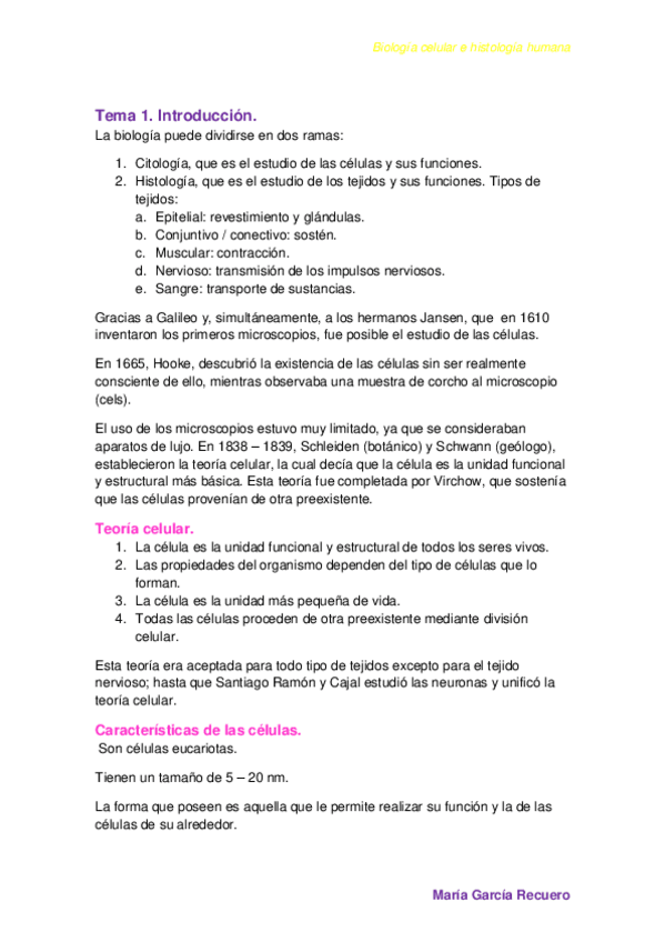 He publicado nuevos apuntes de 1º Biología Celular e Histología Humana: apuntes Biología.pdf