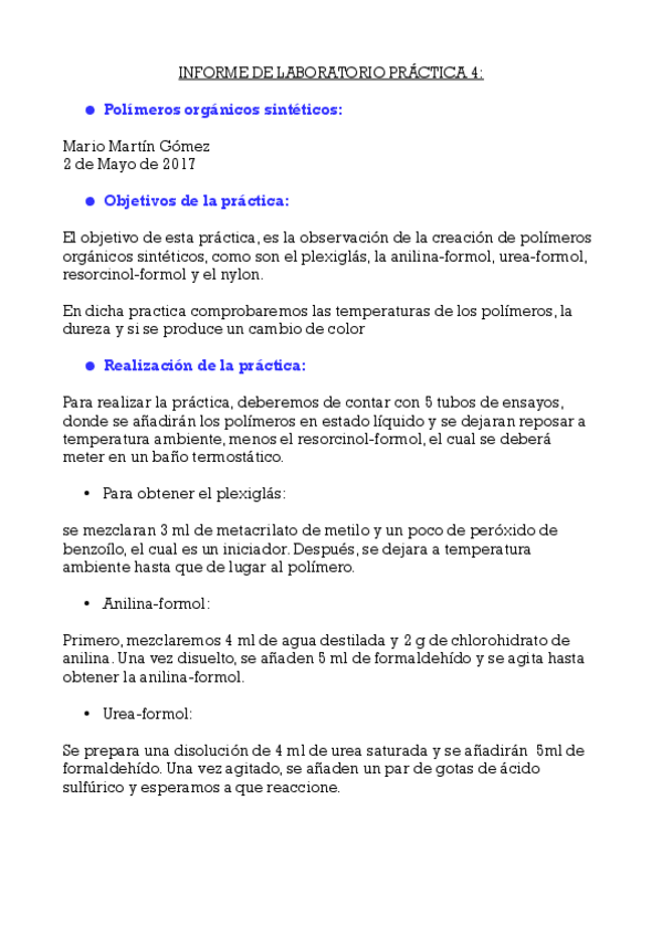 He publicado nuevos practicas de 1º Química: INFORME DE QUIMICA - PRACTICA 1.odt