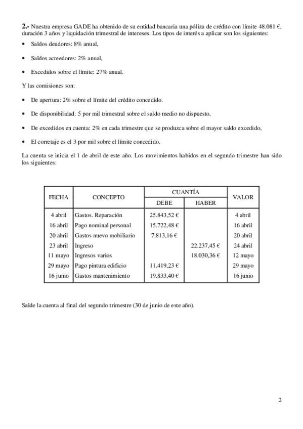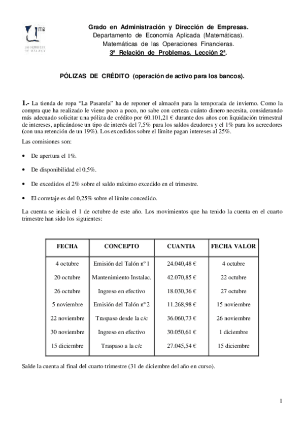 Problemas de Pólizas de Créditos y Cuentas Corrientes