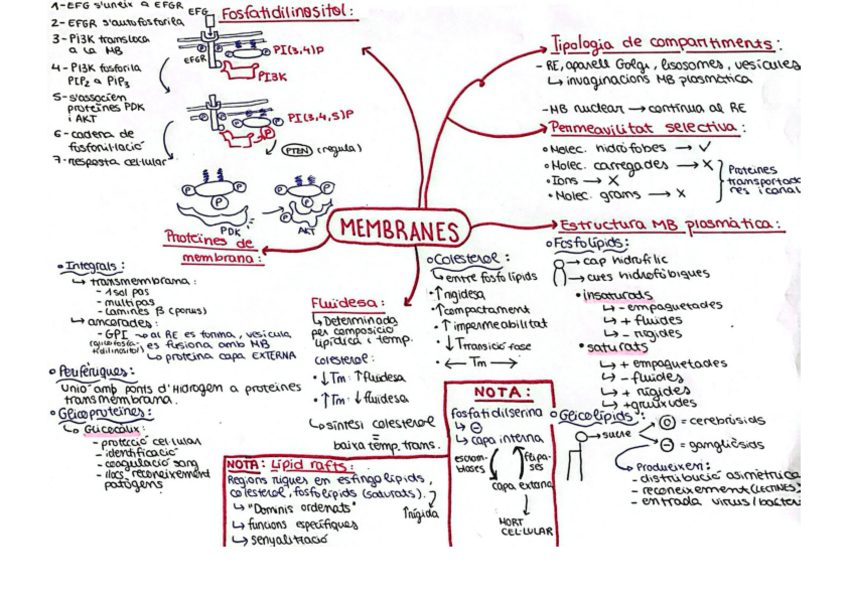 Esquema de la part de membranes amb el més important per l’exàmen