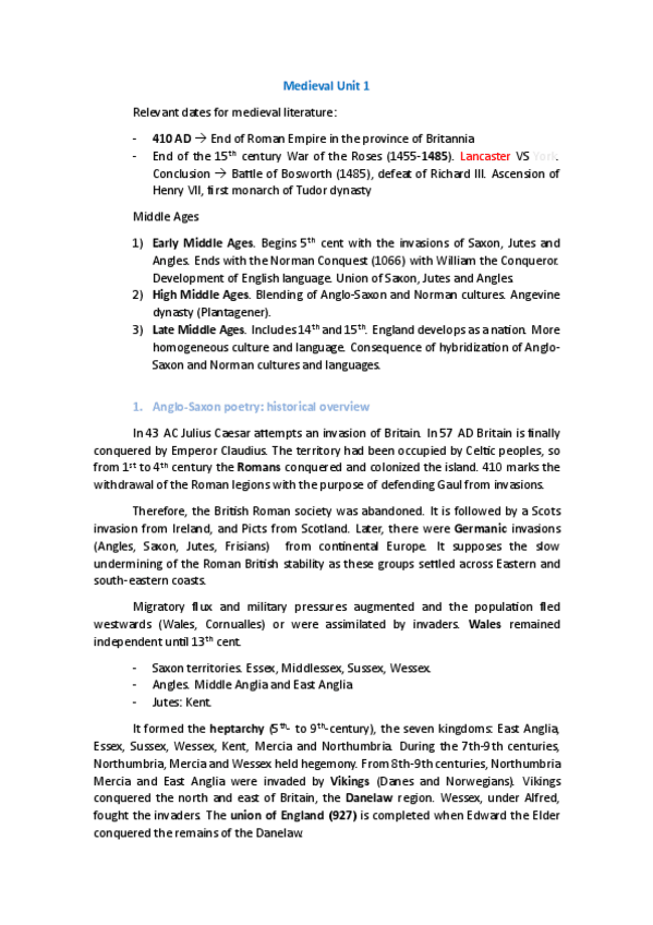 Unit 1 - Anglo Saxon poetry and Beowulf
