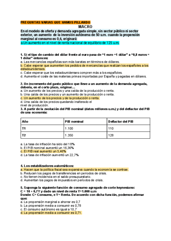 Posibles preguntas de examen dichas en clase por el profesor